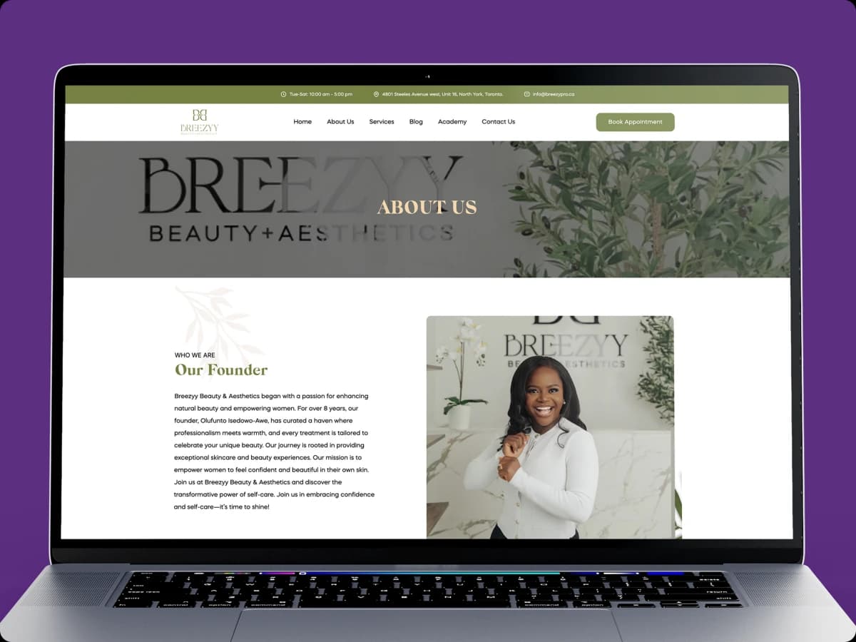 Mactavis partnered with Euphoria to create a welcoming, professional, and conversion-focused website for Breezyy Beauty & Aesthetics that showcases their diverse range of beauty services and embodies their mission of personalized self-care.