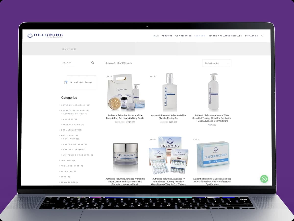 Mactavis helped Relumins Nigeria bring pharmaceutical-grade skincare and beauty to Nigeria. Relumins, an internation skin-care brand launched it's beauty products in Nigeria and needed a dynamic e-commerce store to cater to distributors, wholesalers and retailers.