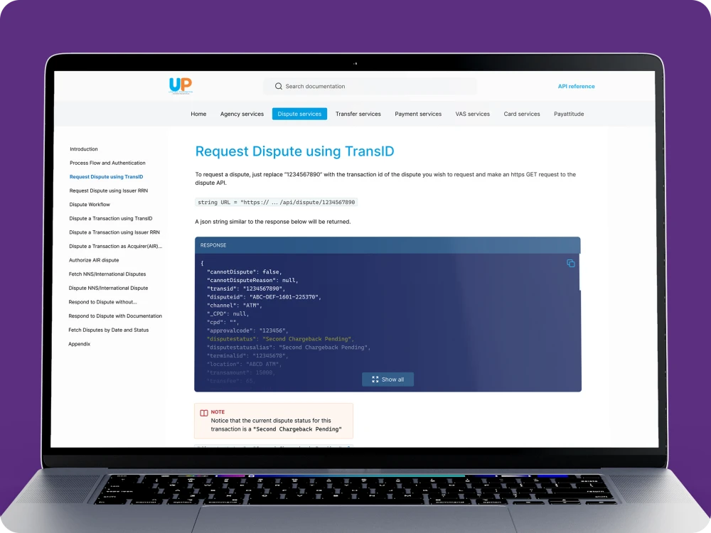 Unified Payments (UP®) is Africa’s first and only non-bank entity licensed as a principal member and acquirer of all major card schemes. To align its digital touchpoints with its tech-forward vision, Unified Payments engaged Mactavis to develop an integrated API Documentation Portal for all it's digital products and services including PayAttitude.